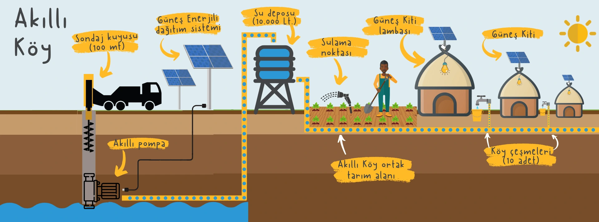 Altın Kalpler Kampanyalarımızın ilki olarak Afrika’da bir “Akıllı Köy” projesine finansör olmayı seçtik. Akıllı Köyler, IDEA Universal Uluslararası Kalkınma ve Çevre Derneğinin devam ettirdiği bir kalkınma projesi. Birleşmiş Milletler Kalkınma Programı tarafından “sürdürülebilirliğe örnek en iyi 5 proje” arasında gösterilen bu projenin amacı Afrika’da temiz içme suyu olmayan köylere temiz su, gıda, enerji, gelir ve eğitim imkânı sağlamak ve bunu sürdürülebilir yani köy halkının kendi imkânlarıyla devam ettirilebilir bir şekilde başarmak.